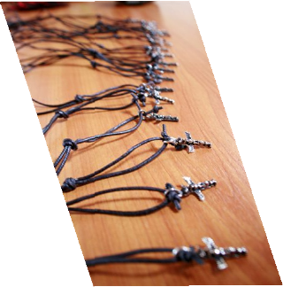 De Badge is een zilveren totempaaltje dat aan een lederen veter hangt en die je over je das draagt.